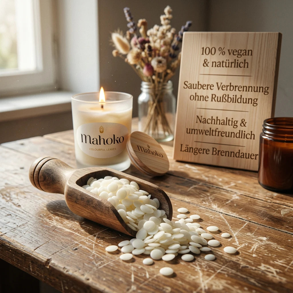 Wir verwenden ausschließlich zertifiziertes Sojawachs aus Europa, das 100 % vegan, biologisch abbaubar und tierversuchsfrei ist. So garantieren wir ein sauberes Abbrennen ohne schädliche Rückstände.