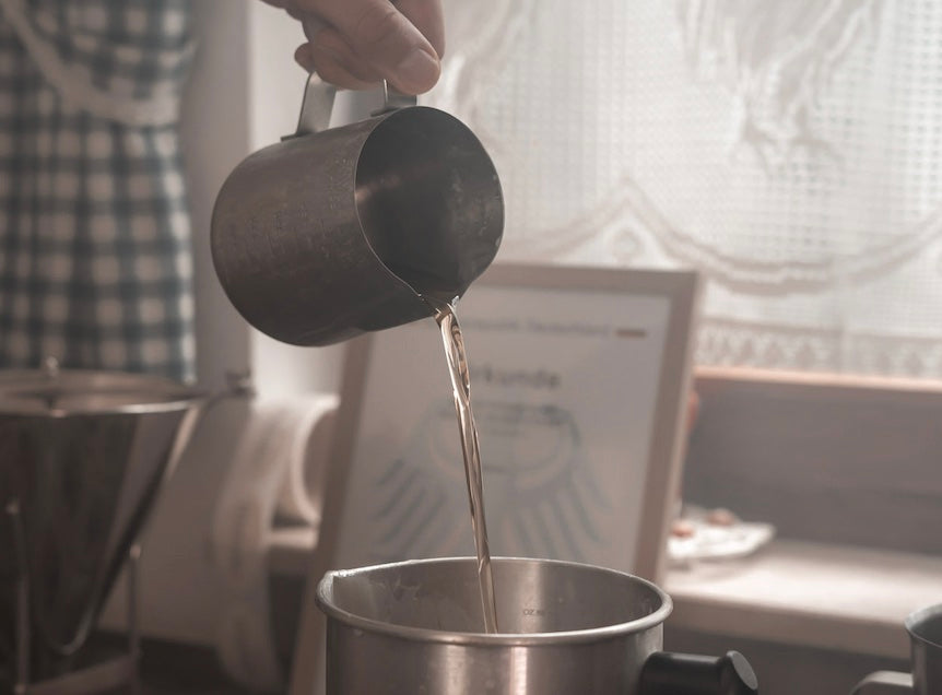 Jede Mahoko Kerze wird von Hand gegossen. Kurze Transportwege, sorgfältig ausgewählte Rohstoffe und recycelbare Verpackungen helfen uns, den ökologischen Fußabdruck klein zu halten.
