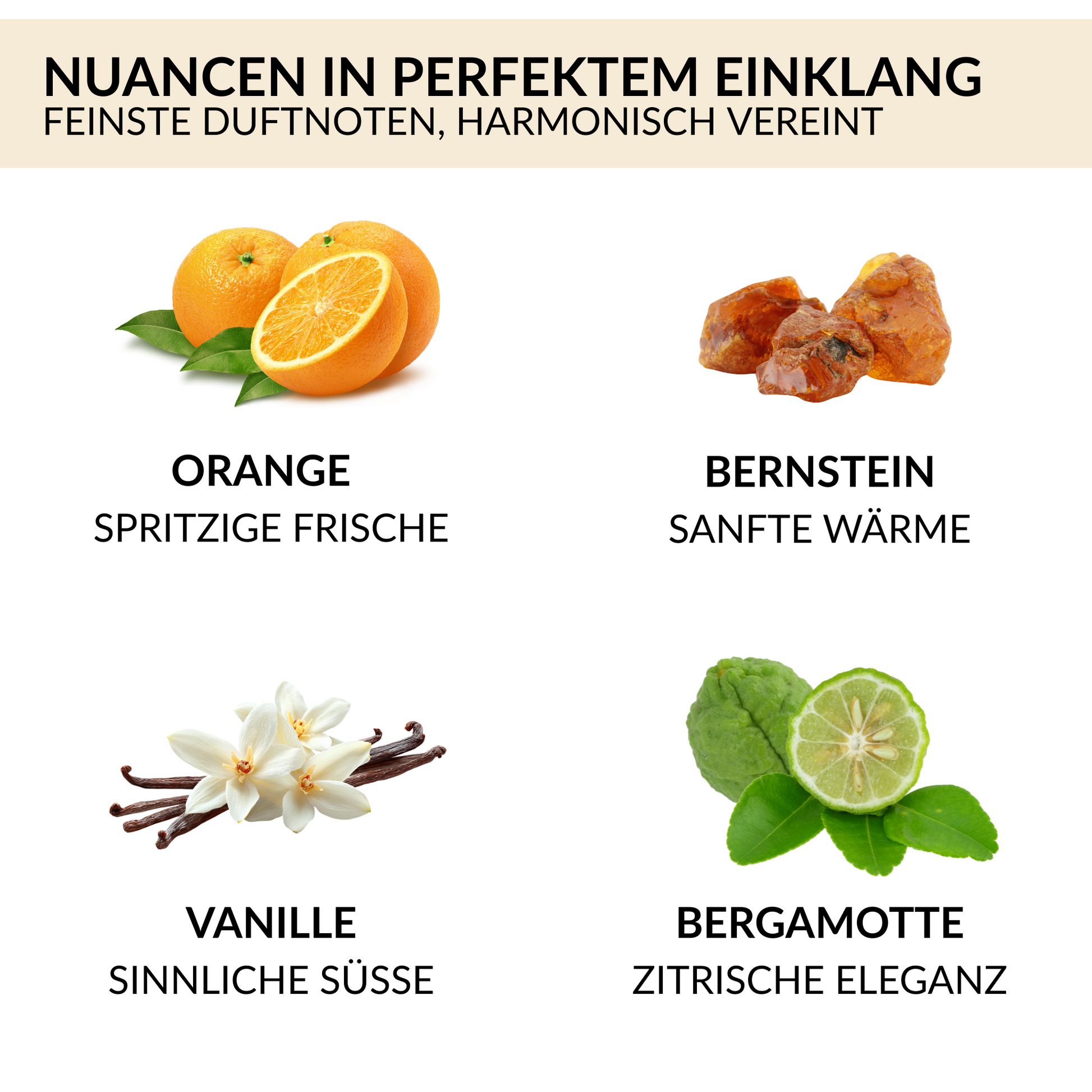 Die warmen Akkorde aus Sandelholz, Bernstein und Vanille sorgen für eine cremige, langanhaltende Wärme. Ein Duft, der jedes Zuhause in eine gemütliche Wohlfühloase verwandelt – perfekt für entspannte Stunden und erholsame Momente.