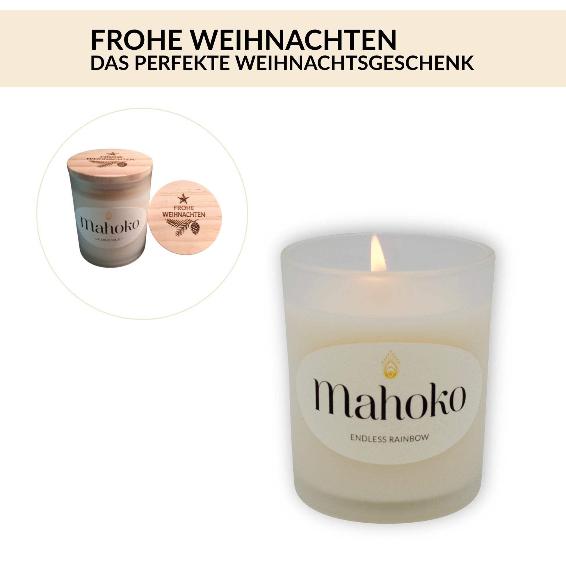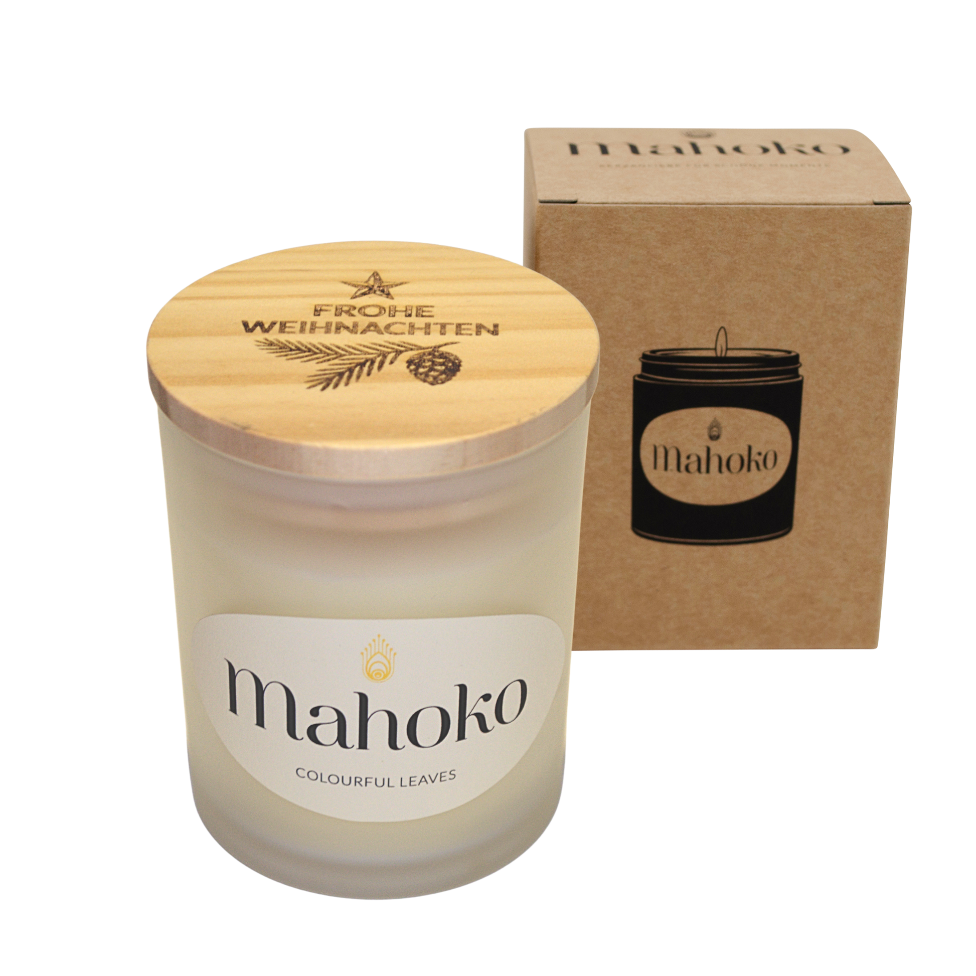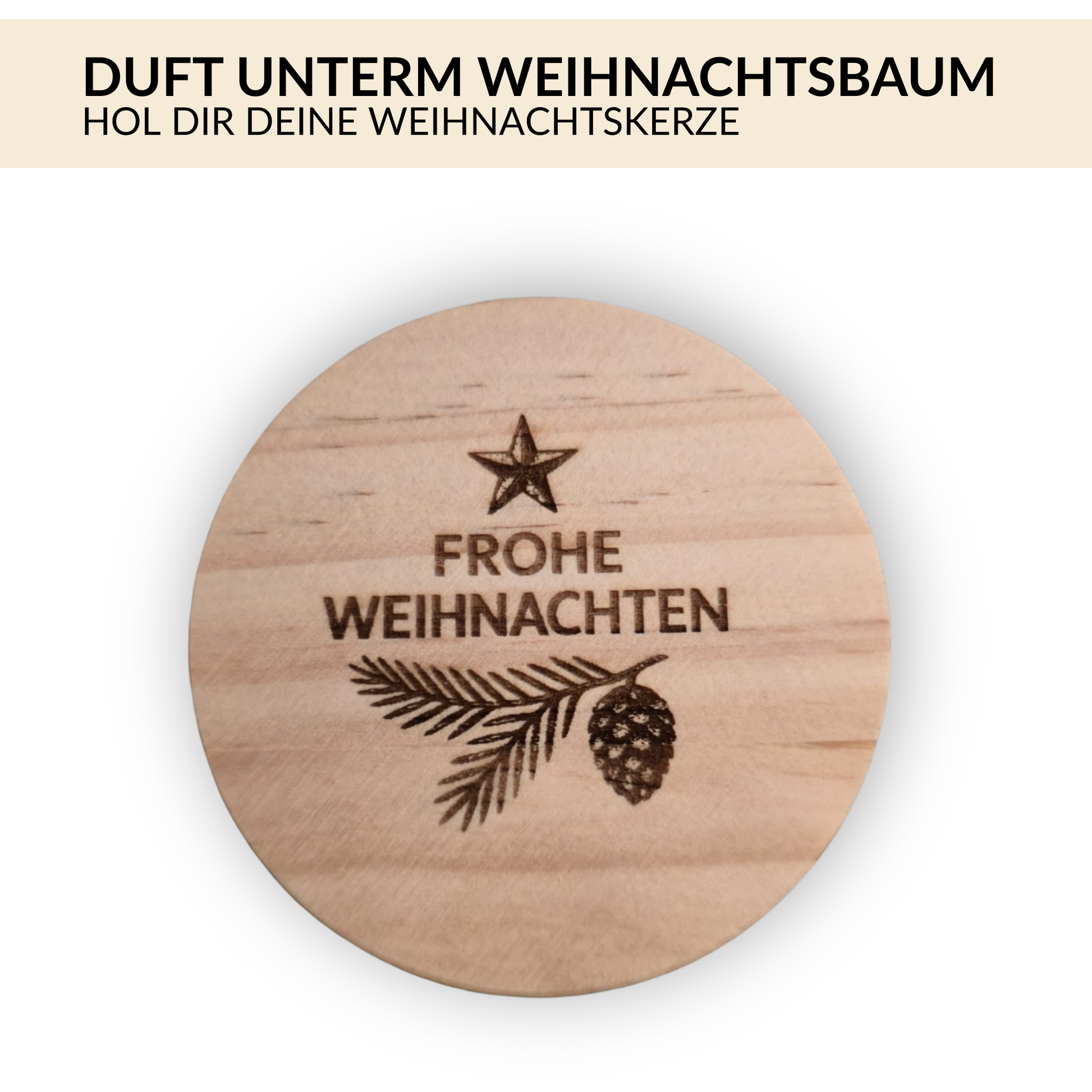 Unsere Frohe-Weihnachten-Duftkerze bringt festliche Stimmung direkt in dein Wohnzimmer. Handgemacht aus 100 % natürlichem Sojawachs, veredelt mit einem edlen Holzdeckel mit der Gravur „Frohe Weihnachten“ und abgerundet durch hochwertige Duftöle, ist sie das perfekte Highlight für die schönste Zeit des Jahres.